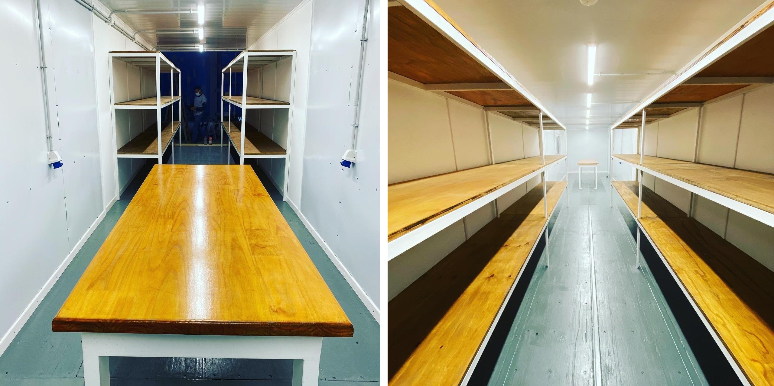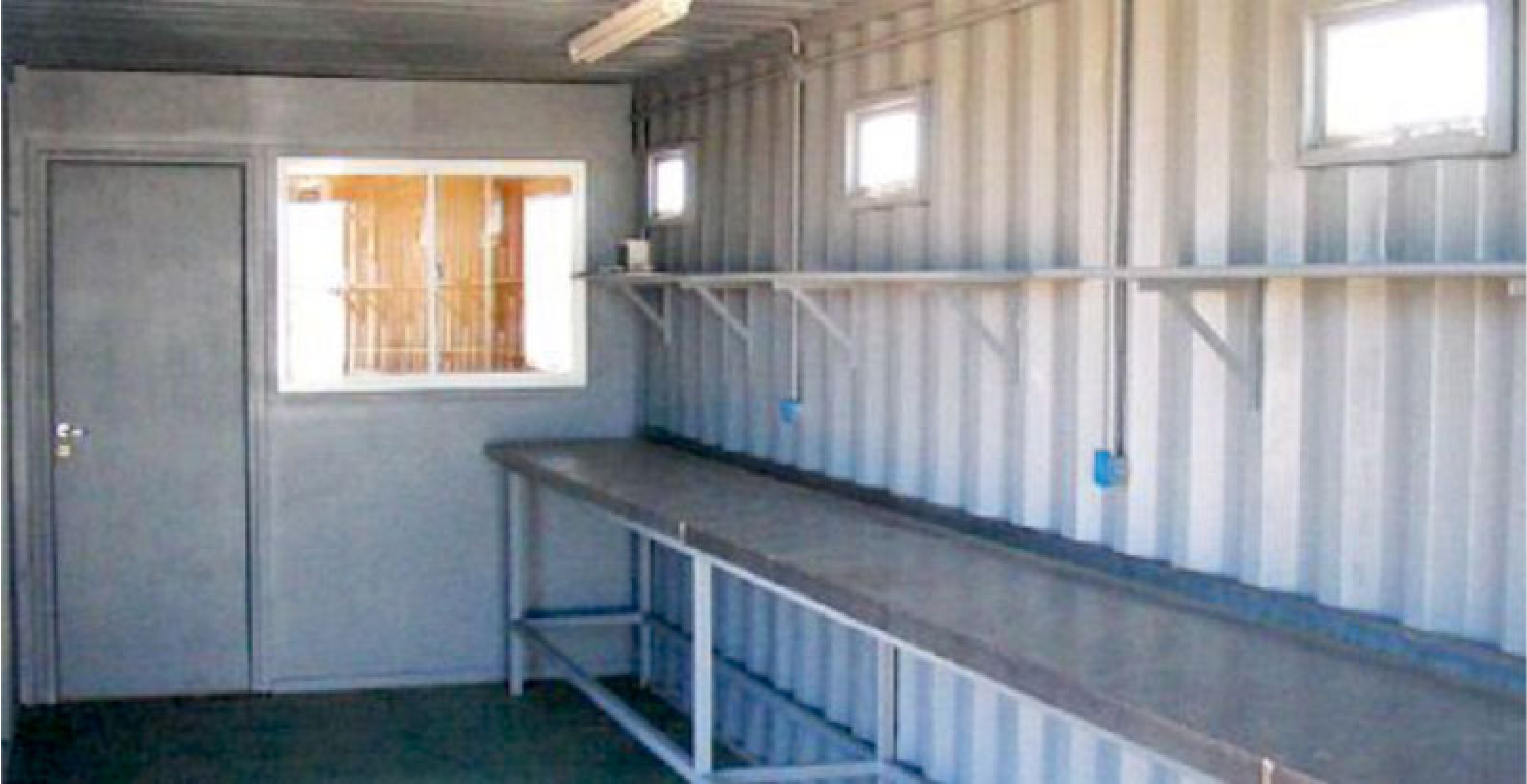 El producto puede ser entregado con estanterías, mesa de trabajo, bachas y todas las instalaciones necesarias de acuerdo al fin que se desee satisfacer.