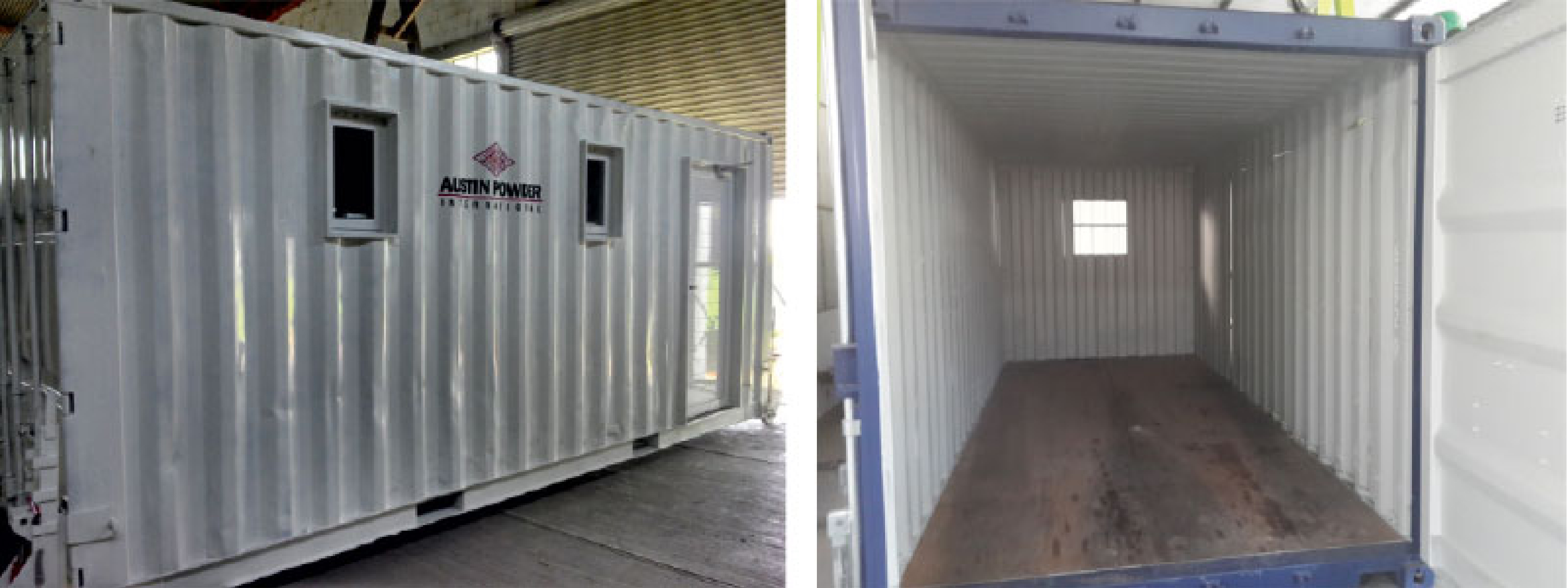 Se entrega el container original. Solamente se le realiza la instalación eléctrica. Se pueden colocar estanterías. Por sus características técnicas es altamente seguro.